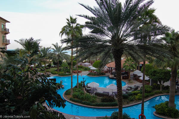1. Spacious rooms. We don’t spend a whole lot of time in our hotel room; after all, we want to see and experience the destination! But when we are in our room relaxing, and sometimes even working, we don’t like to be cramped. Our deluxe room was a spacious 538 square feet with a lovely sitting area, workspace, and private balcony overlooking the pool. I also loved the spacious bathroom with a relaxing rain shower, separate soaking tub with head pillow, and double vanity.