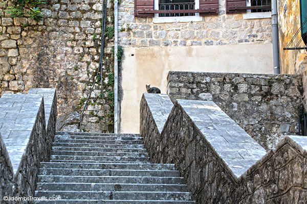 The Bay of Kotor is said to be Montenegro’s most beautiful bay and despite the temperatures reaching near 100 F during our visit, we were prepared to brave the scorching heat and climb the 1350 steps up to Kotor’s formidable fortress. But when we arrived in the bay, we could hardly see the fortress due to a heavy blanket of haze caused from the wildfires burning across the Balkins. We were totally willing to complete the strenuous climb to St. John when we thought our efforts would be rewarded with stunning views over the bay, but the stifling heat and lack of visibility had us quickly chucking that plan right into the bay.