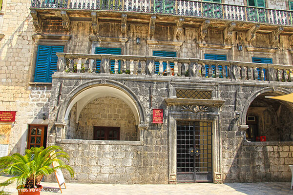 The Pima Palace, which dates from the 17th century, shares Flour Square with the Buca Palace and is a detailed example of Renaissance and Baroque style architecture in Kotor.