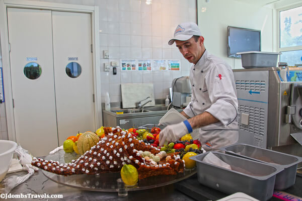 After a lunch in the university cafeteria, we were back in the lab where Maestro Ferrari and his best students and staff were putting the finishing touches on a cornucopia (literally a giant cone made into the shape of a cornucopia) filled with various fruit sorbets. After snapping some pictures, our group was anxious to sample gelato made by the experts themselves!