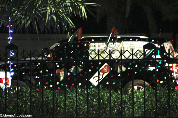 The United Arab Emirates (UAE) is still a very new country, 41 years young in fact. UAE National Day, celebrated December 2, marks the UAE’s formal nationalization from British Protectorate Treaties which ended on December 1,1971 and the unification of the seven emirates which combined to form the modern-day country. In short, National Day is a lot like the United States’ Independence Day. I’ve never spent a 4th of July in Washington DC though I’ve attended my fair share of 4th of July barbecues and fireworks, but I’ve honestly never seen a display of national pride like we witnessed during the National Day festivities while we were in Abu Dhabi.