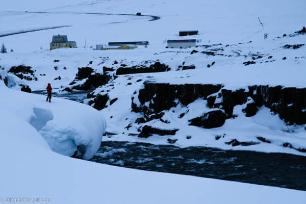 We had spent the previous day traveling around Lake Mývatn by Super Jeep with Saga Travel, so we wanted to hit the road and see some of the sights of the North that are a little further afield. We checked the handy Vegagerdin.is website to see what the road conditions were like heading out to Dettifoss, Europe’s most powerful waterfall. We had passed the turnoff on our way to Lake Mývatn and the road was closed. Still showing closed, we decided to see Goðafoss instead. (See more tips for driving in Iceland in winter.)