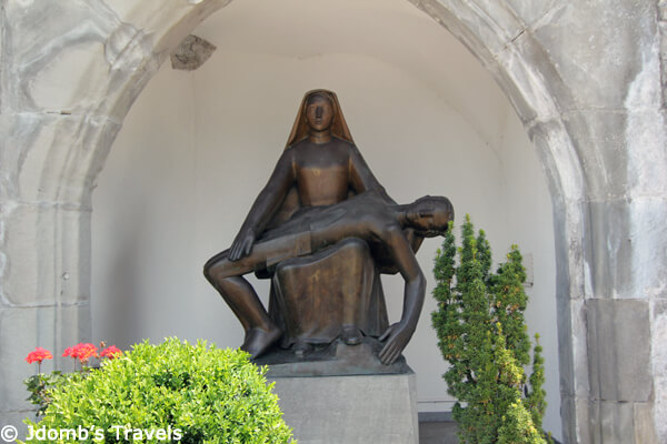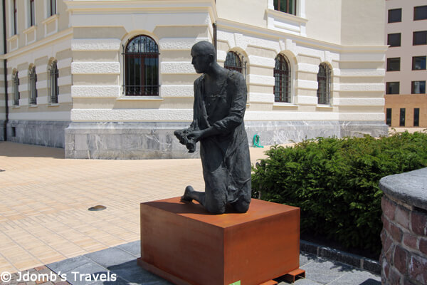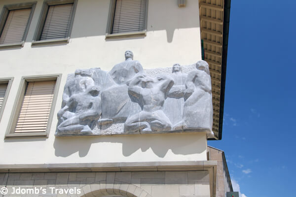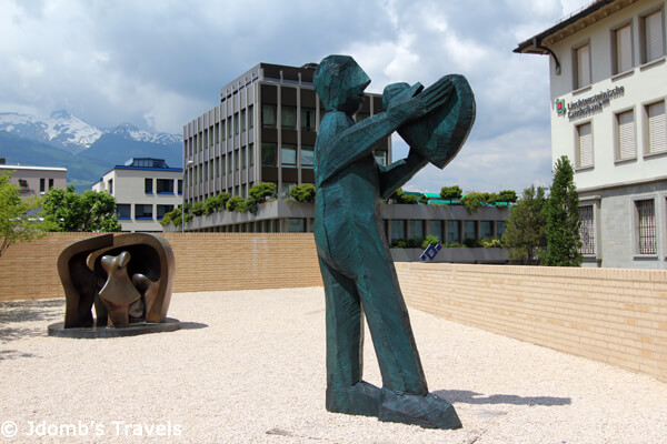 It was a Monday, and unfortunately literally nothing but the tourist information office was open. But Vaduz was still worthy of a stroll around town. The Art Museum (Kunstmuseum) of Liechtenstein houses one of Europe’s oldest private collections in a modern, prize-winning museum building. While it wasn’t open, we did enjoy the outdoor art and sculptures all around the square housing the museum.
