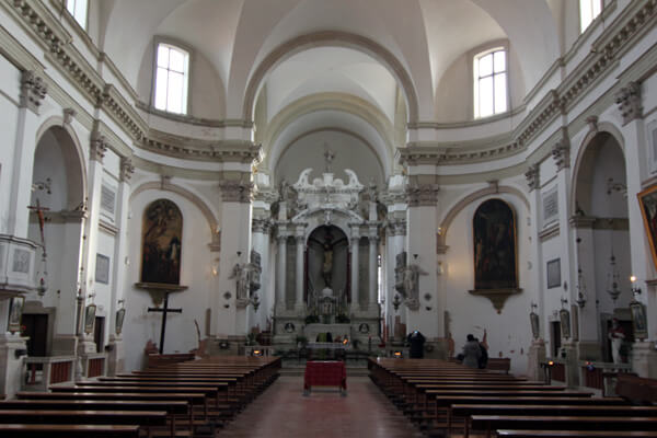 The Duomo, or cathedral, is at the opposite end of Corso del Popolo from Piazzetta Vigo. It became a cathedral in 1110 but was rebuilt in 1623. The cathedral has a marble pulpit with gold canopy and a decorated 17th century altar. There’s a nice 19th century stained glass window. Outside the Duomo stands its tall fourteenth-century campanile, which is older than the present incarnation of the main church.