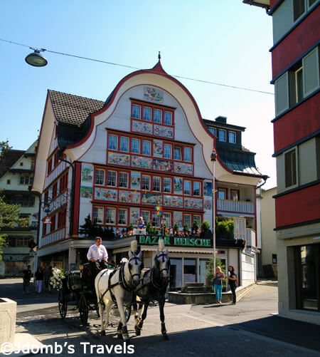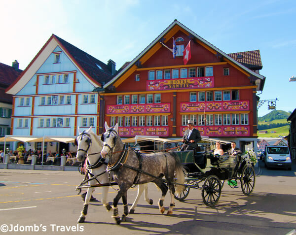 We contemplated a trip to Zermatt to see Switzerland’s most famous mountain, but instead opted for the rural region of Appenzell, high up in the Alps of eastern Switzerland. We had read before arriving that a visit to Appenzell is like turning back time and that it was! Appenzell is Switzerland’s most traditional region; all elections and parliamentary business are still publicly debated in the historic village square Landsgemeindeplatz and voting is done by a public show of hands. Women weren’t even allowed to vote until 1991.