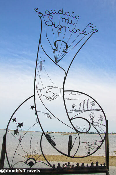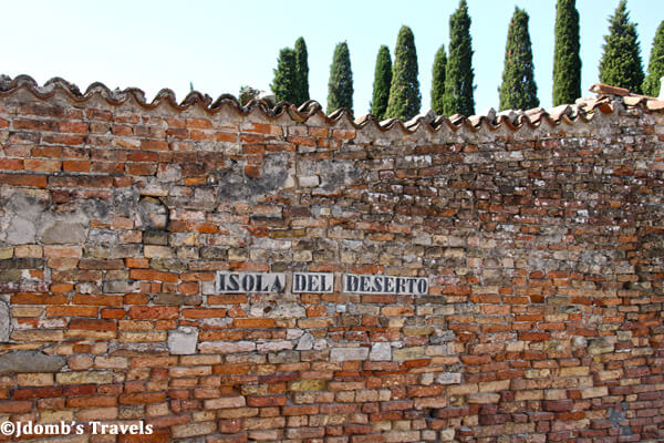 After soaking up the sun and the views of islands in the lagoon, we arrived at an island so still and so quiet we wondered if anyone was around. A line of Cyprus trees to our left and a fortified wall to our right contained our little group to a gravel path. After a few minutes of walking, we came to a sign announcing where we had arrived. It simply said The Deserted Island.