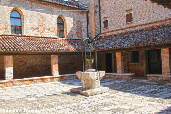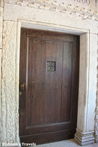 We were on the ancient island of San Francesco del Deserto, where the Minor Franciscan Brothers had built a convent in 1223. We continued along the path until we arrived at the wooden door to the monastery. Giving it a rap, we waited anxiously for a monk to answer. The monk spoke no English, but he handed each of us a guide in English and welcomed us into the monastery for a visit.